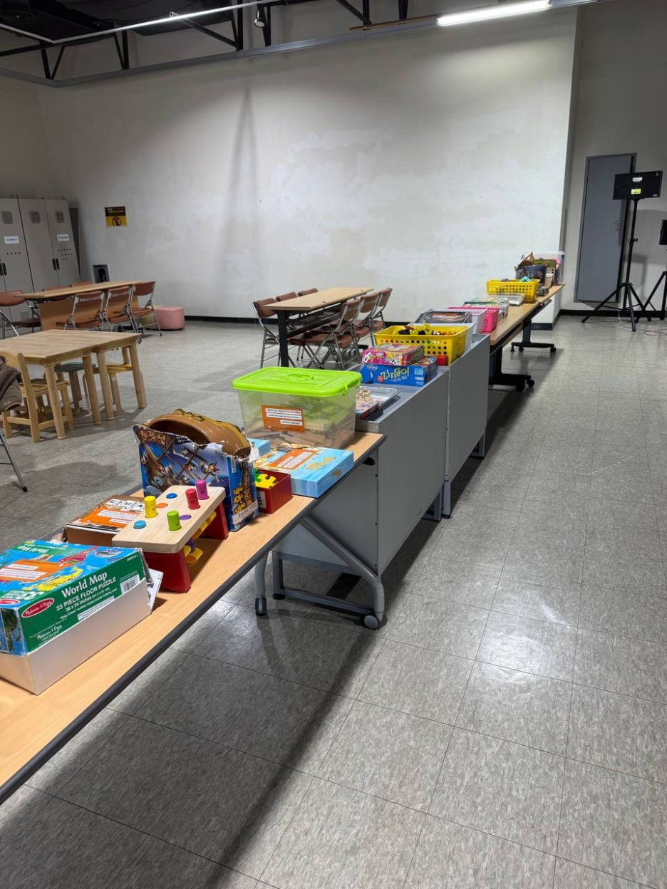 보드게임, 블럭, 그림 컬러링 등을 자유롭게 이용할 수 있고, 방명록을 작성한 후 원하는 교구를 가져와