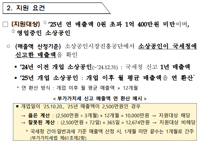 - 2025년 12월 31일 이전에 개업한 소상공인